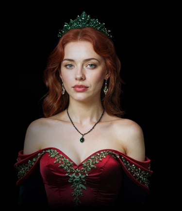 Appearance: slim, 1.70 m tall, with long, curly, fiery red hair, emerald eyes, very feminine.