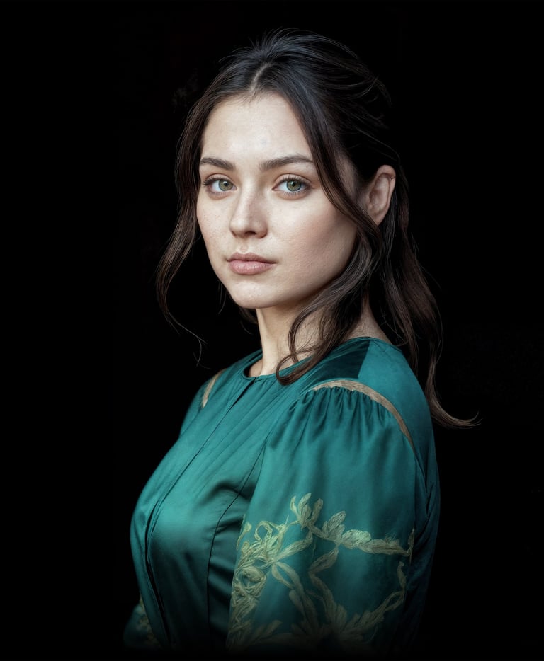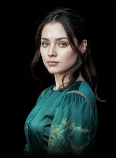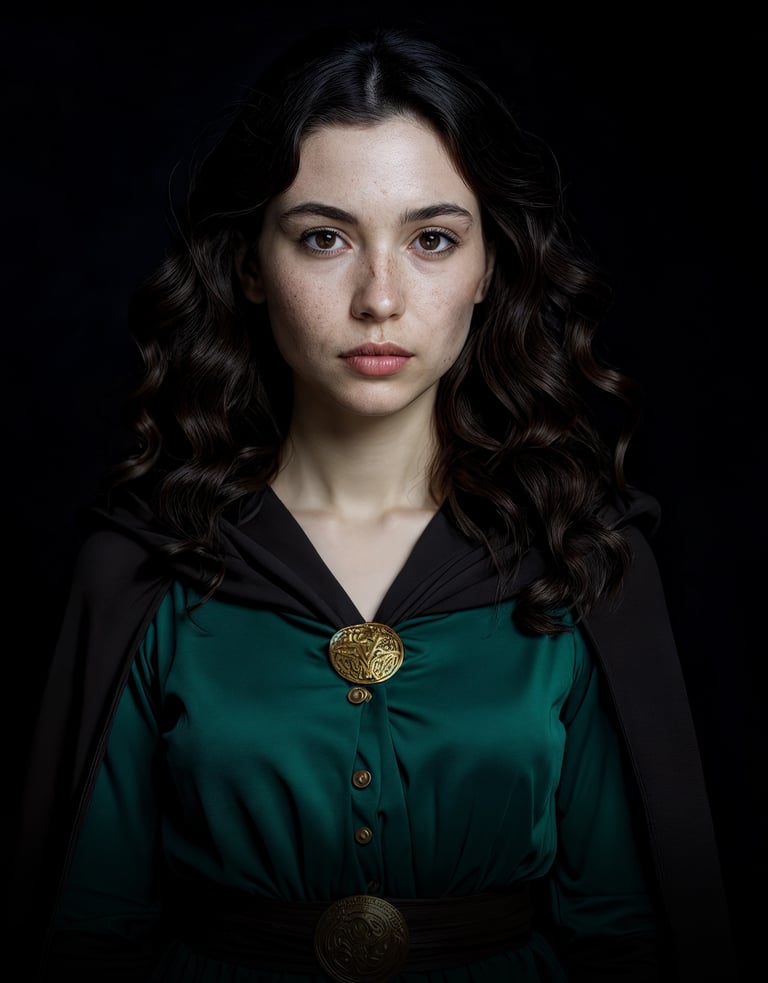 Appearance: slim, 1.70 m tall, long brown hair, emerald eyes, pretty.